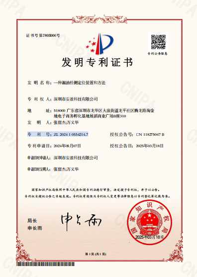 3月18日消息,深圳市安盈科技有限公司收到由中華人民共和國國家知識(shí)產(chǎn)權(quán)局頒發(fā)的一項(xiàng)《發(fā)明專利證書》,安盈科技自主研發(fā)的漏油監(jiān)測(cè)系統(tǒng)——“一種漏油檢測(cè)定位裝置和方法”榮獲國家發(fā)明專利,專利號(hào):ZL 2024 1 0554214.7。這一成果標(biāo)志著安盈科技在工業(yè)安全監(jiān)測(cè)技術(shù)領(lǐng)域的領(lǐng)先地位,也為行業(yè)漏液監(jiān)測(cè)提供了創(chuàng)新解決方案。...